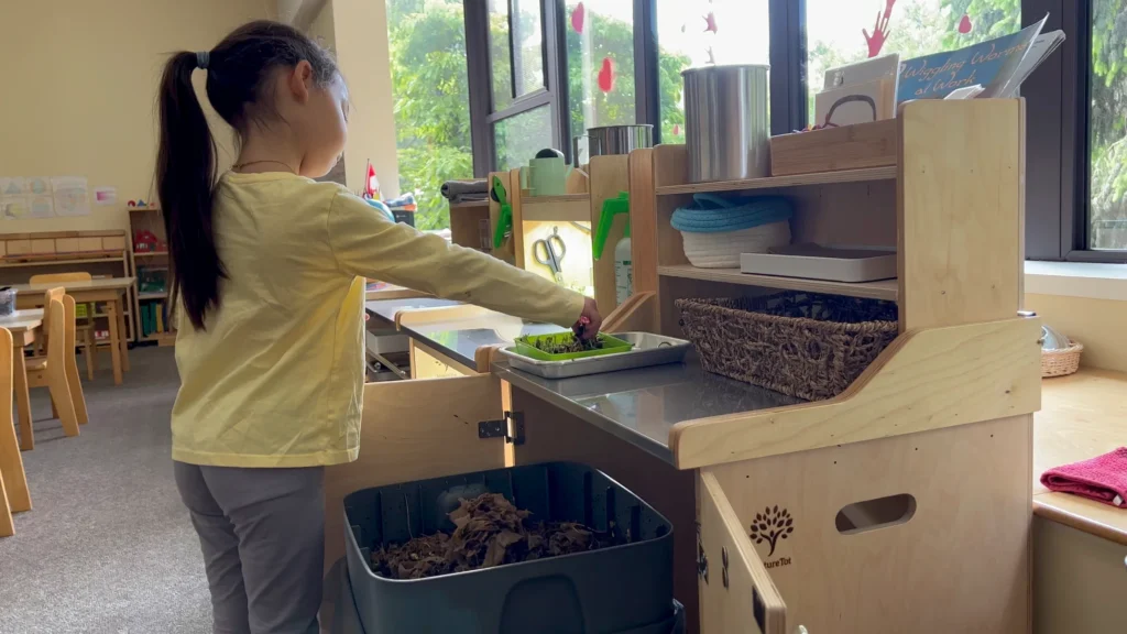 Second, it has been shown that the composter worm actually removes harmful bacteria from the soil. So, while it is very important to keep a clean environment, the worms need not be frightening. In our NatureTot System Masterclass we have taken a meticulous and cautious approach to introducing these in your prepared environment.  We make several recommendations to keep the whole system clean and safe for you and your children without being cumbersome.