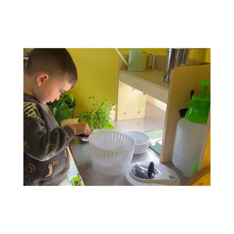 The beautiful Harvesting Cabinet and spectacular Montessori materials  makes growing produce and the independence of the child a viable option for the prepared environment.
