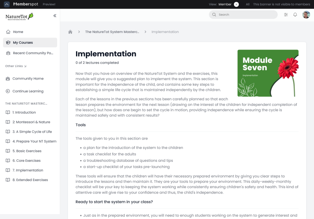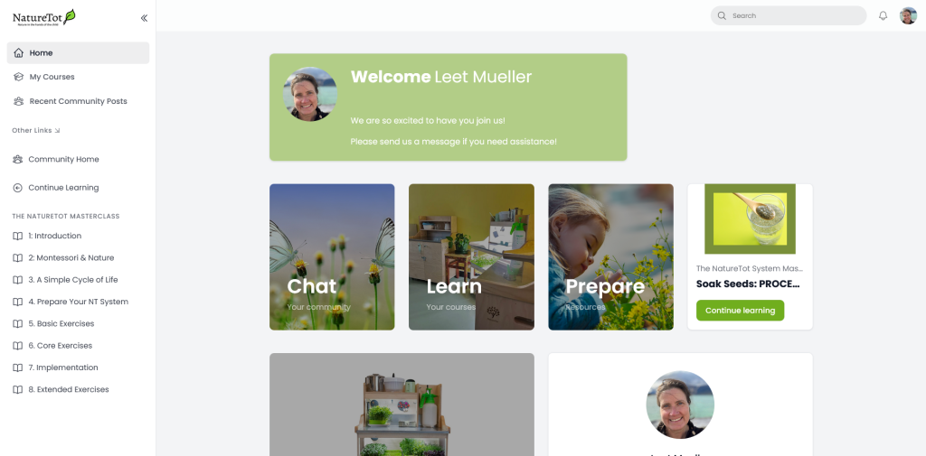 The NatureTot Community helps you provide nature experiences in your prepared environment. It is an online group community that accessed within the course platform.